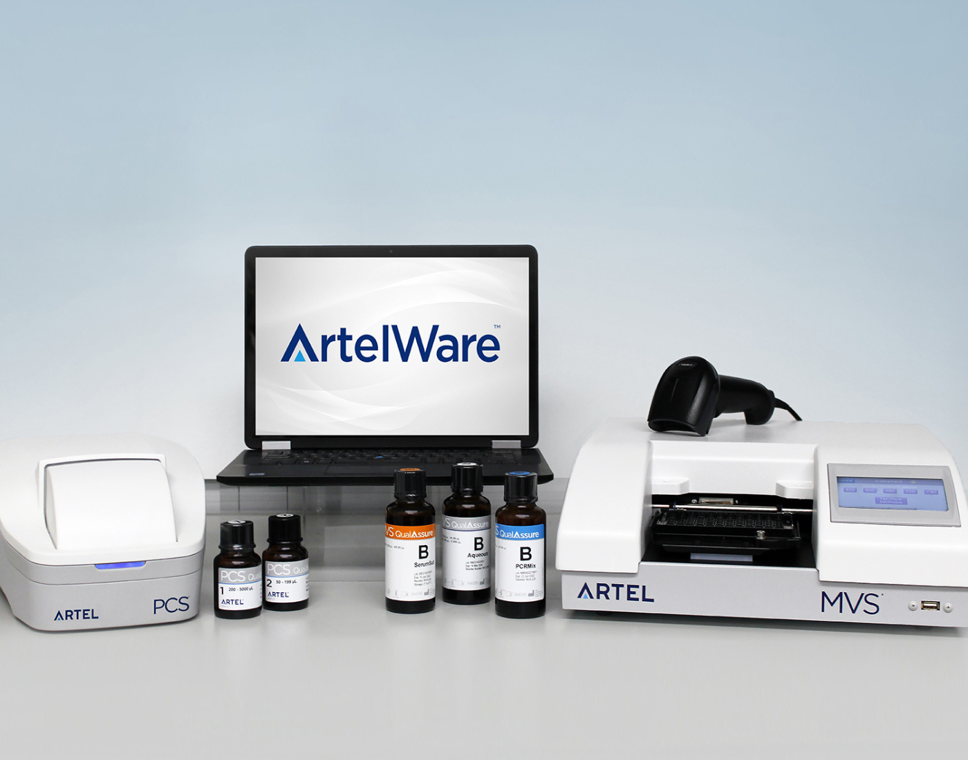 MVS 和 PCS 分别符合 ISO 23783:2022 和 ISO 8655-7:2022 中描述的双染比光度法。PCS 符合 ISO 8655-8要求。 ArtelWare软件可用于要求符合21CFR Part 11的实验室。