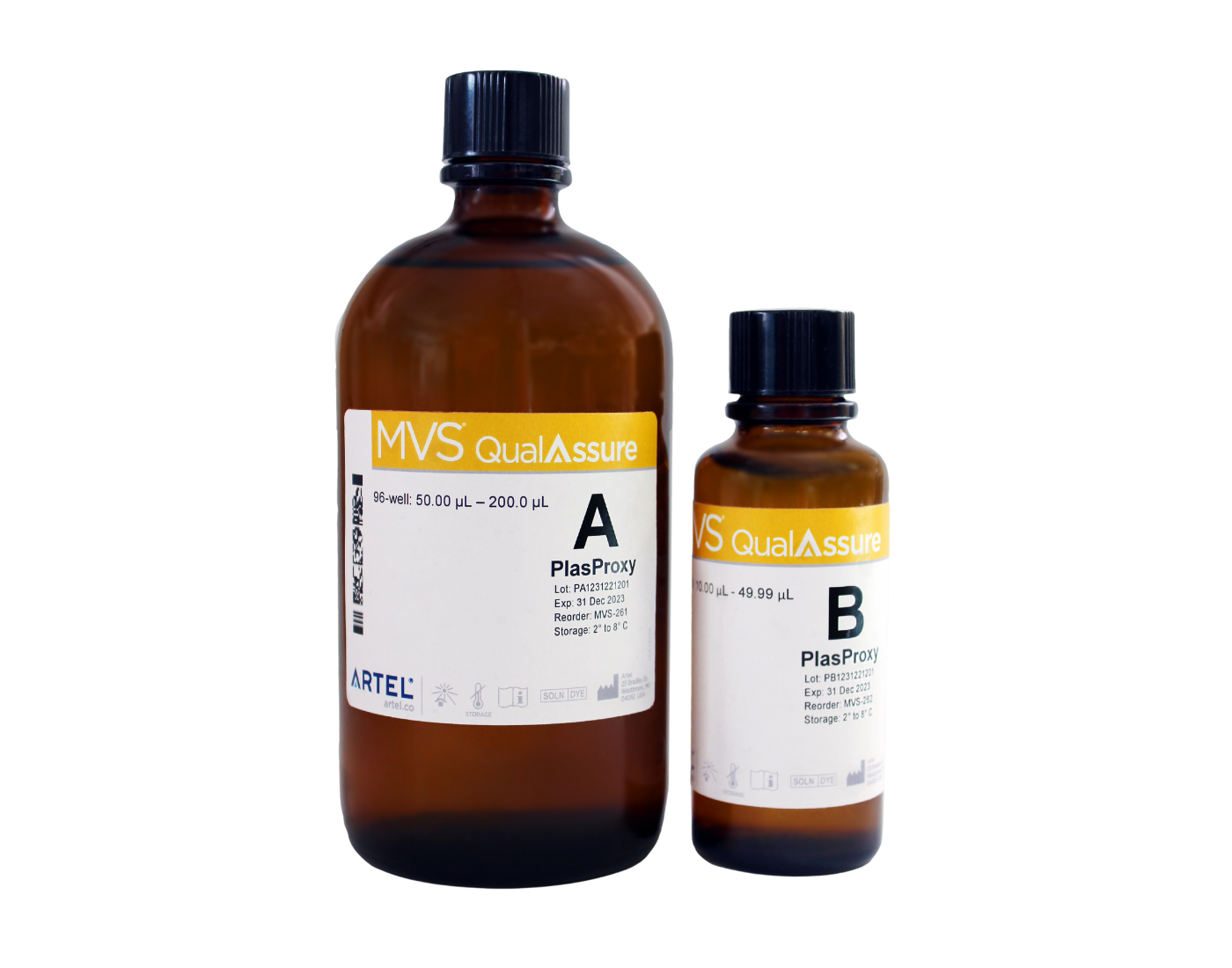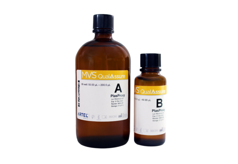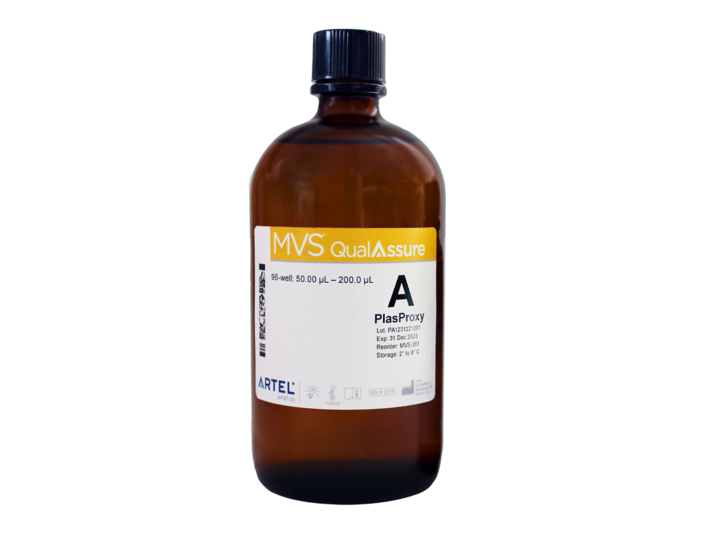 图2 这些数据描述了使用经过优化以释放10μL PlasProxy QualAssure的自动液体处理器,与不同血浆相比,所述的释放体积。