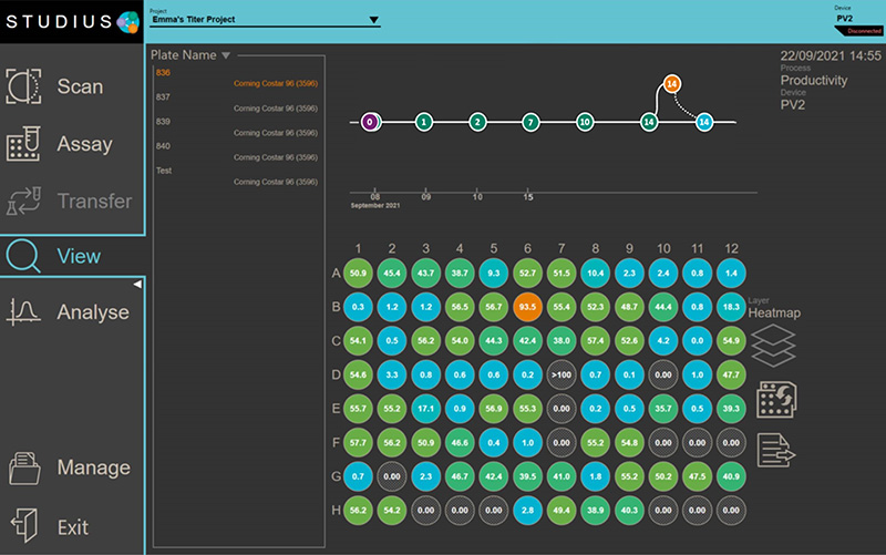 使用荧光偏振法测量滴度,每次测定仅需60μl。这意味着可以在该过程的早期测量滴度,例如在第14天的静态克隆板或48或24 DW悬浮振荡板进行。早期的滴度测量可以在早期找到高产的克隆。