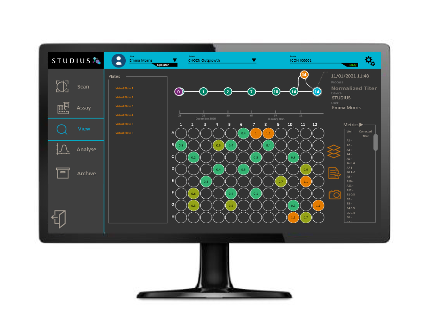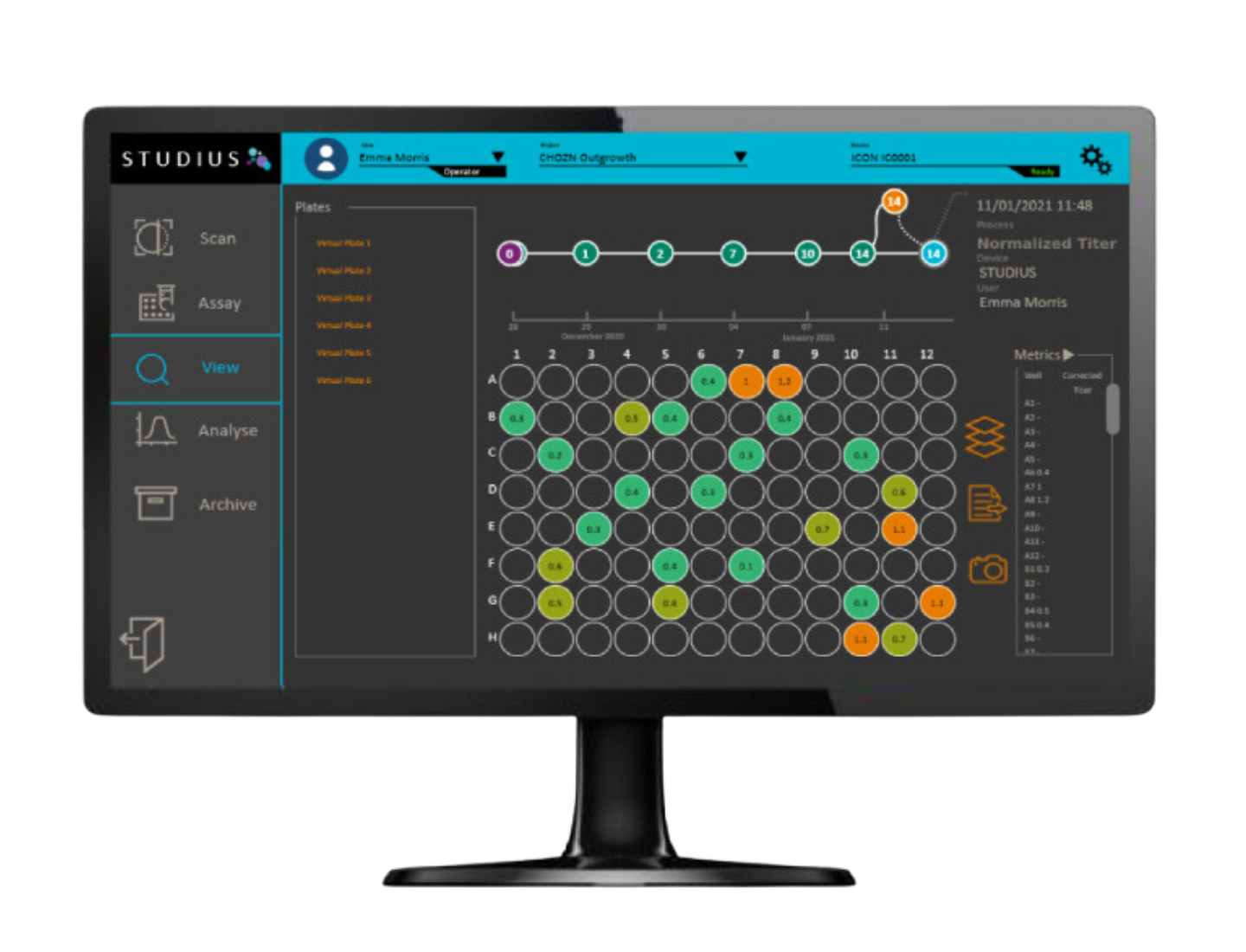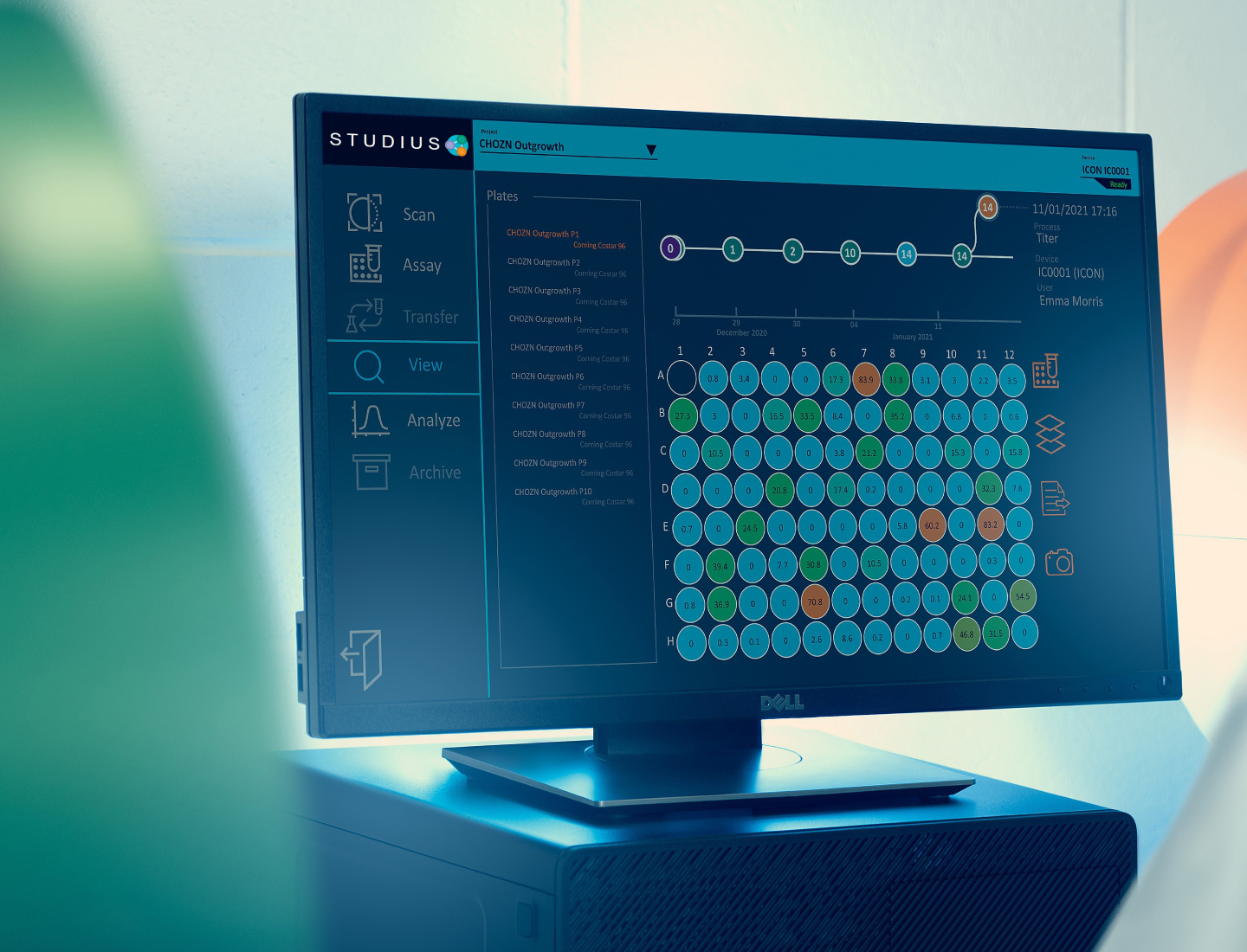 在STUDIUS生态系统中,排名和决策会根据用户设定的参数自动即时进行。之前需要数小时或数天反复比较各种格式的结果现在由STUDIUS软件执行,根据用户定义的参数(如克隆性、汇合度和滴度)在几分钟内就可以提供克隆的排序和选择。